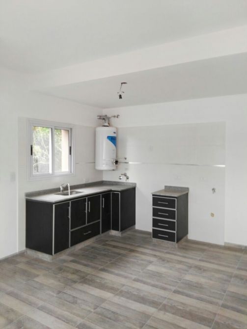 COCINA COMEDOR DIARIO CON AMOBLAMIENTOS EN MELAMINA COMPLETOS, 1 DORMITORIO C/VESTIDOR, BAÑO INSTALADO, COCHERA.