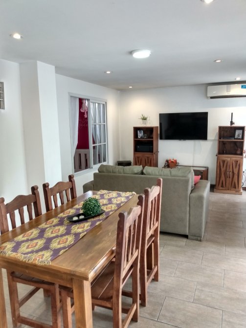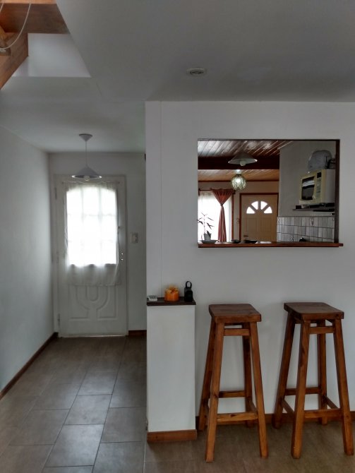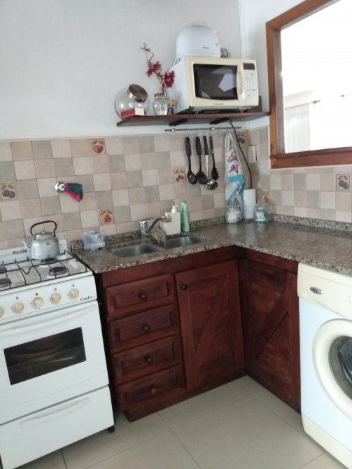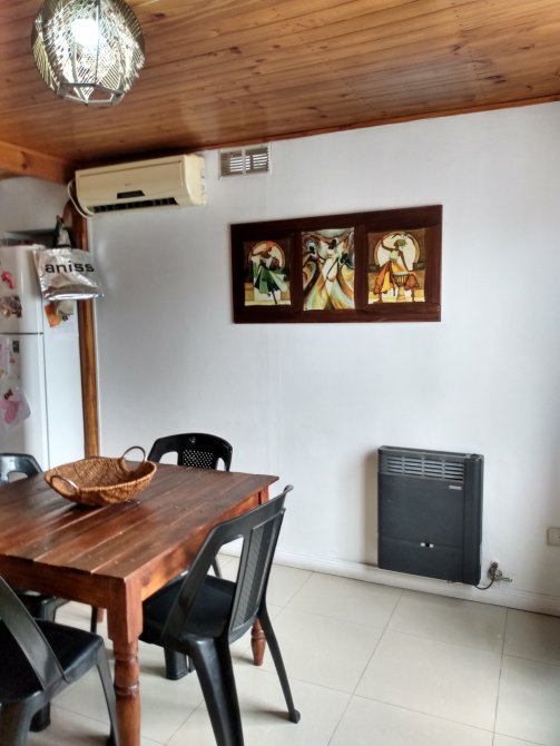COCINA COMEDOR CON AMOBLAMIENTOS DE COCINA EN MADERA, CON LAVADERO INCORPORADO, UN AIRE ACONDICIONADO Y ESTUFA DE TIRO BALANCEADO, PISO DE PORCELANATO.
