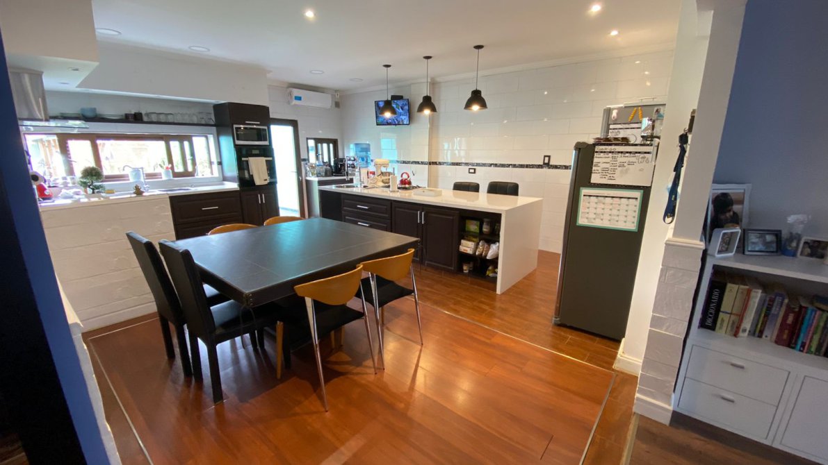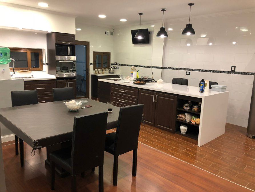 COCINA COMEDOR DIARIO IMPACTANTE!! CON MUEBLES DE COCINA CON DISEÑO MODERNO, INNOVADOR Y FUNCIONAL : UNA MESADA EN L EN SILESTONE WHITE STORM, CON BACHA TRILE DE ACERO INOXIDABLE JOHNSON, CON ANAFE ELÉCTRICO DE 4 HORNALLAS Y HORNO CONVECTOR ELÉCTRICO.