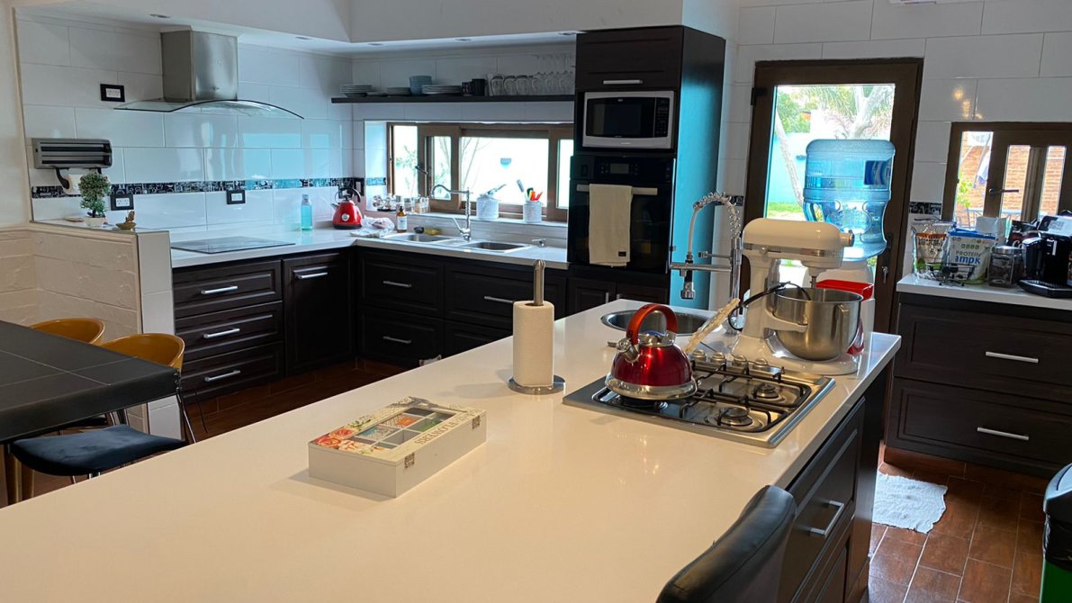 HERMOSA ISLA DE 3 X 1m2 CON DESAYUNADOR, UNA BACHA JOHNSON REDONDA, Y UN ANAFE DE 4 HORNALLAS A GAS.